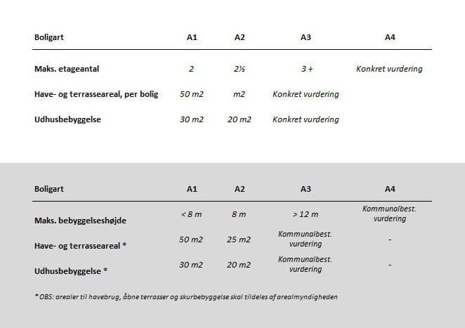 Ved etageboligbebyggelse forstås karré-, stok-, blokbebyggelse samt punkthuse som opføres i 3 etager eller højere.