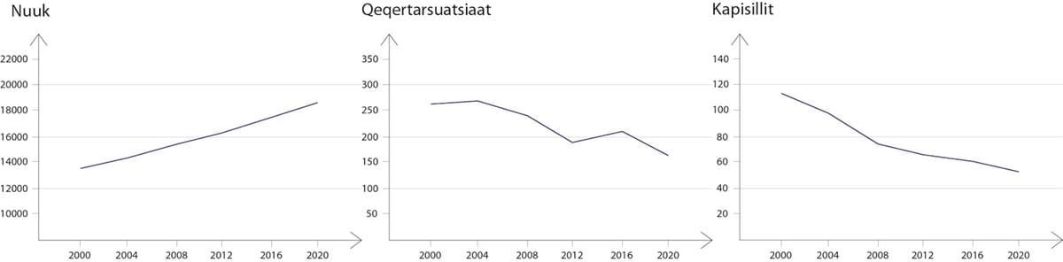 Nuuk fungerer som centrum for Kommuneqarfik Sermersooq og hele Grønland. Hertil er knyttet de to bygder Kapisillit og Qeqertarsuatsiaat, der ligger henholdsvis 75 og 135 kilometer fra Nuuk. I alt bor der omkring 18.500 beboere i dette område, der længe har oplevet en kraftig befolkningstilvækst på grund af Nuuk, der fungerer som en magnet for hele landet. Til gengæld har de to bygder oplevet et fald i befolkningstallet i perioden, der primært består i en fraflytning mod Nuuk.