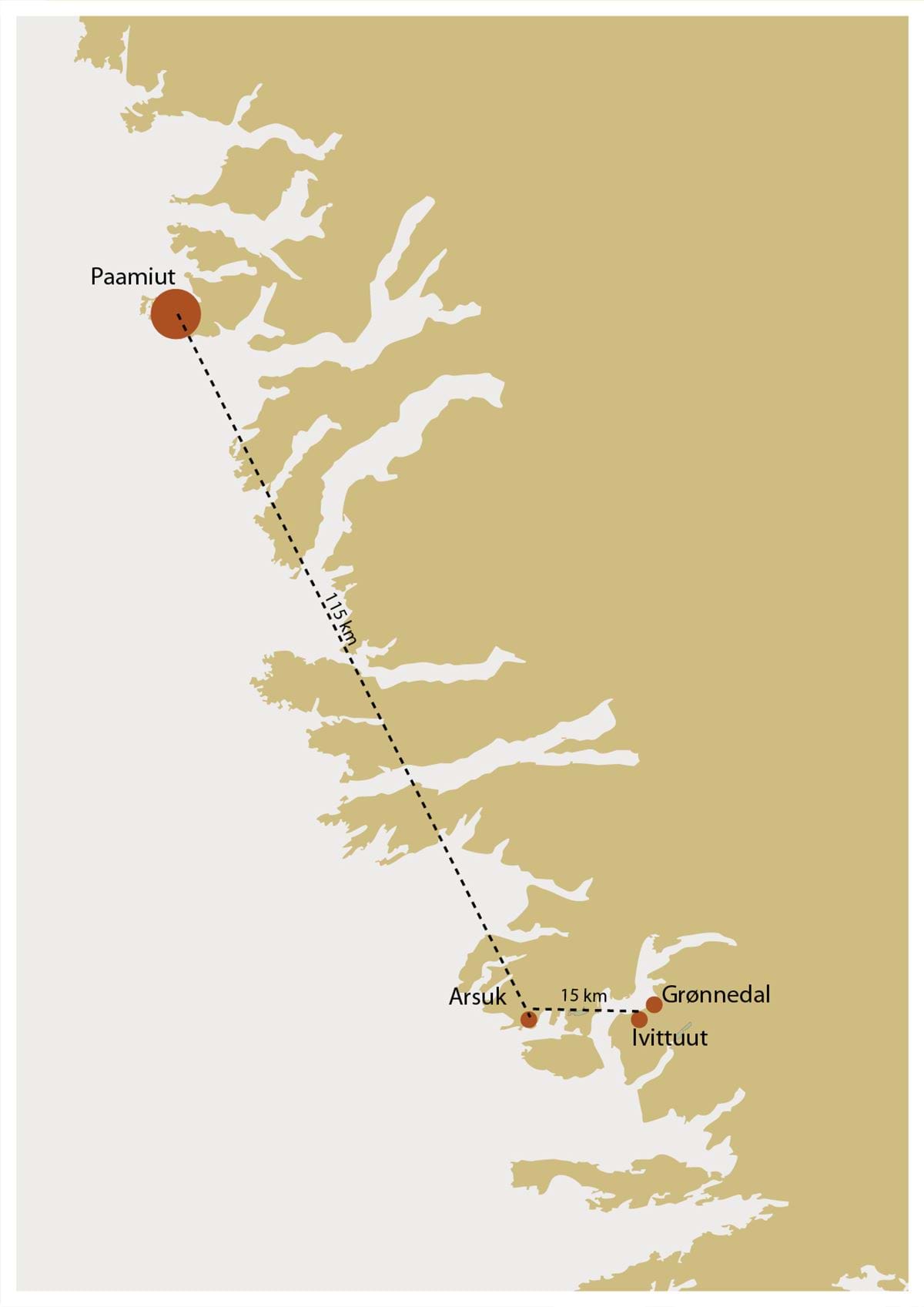 Paamiut udgør sammen med Arsukfjorden (bestående af Arsuk, Ivittuut og Grønnedal området) en samlet geografi på den sydlige vestkyst. Paamiut har i 2020 omkring 1.300 indbyggere, Arsuk har 73, Ivittuut er fraflyttet, mens Grønnedal igen anvendes som flådestation af Arktisk Komando. Arsuk ligger 115 kilometer syd for Paamiut og Ivittuut og Grønnedal ligger inde i Arsukfjorden, 15-20 kilometer fra Arsuk.