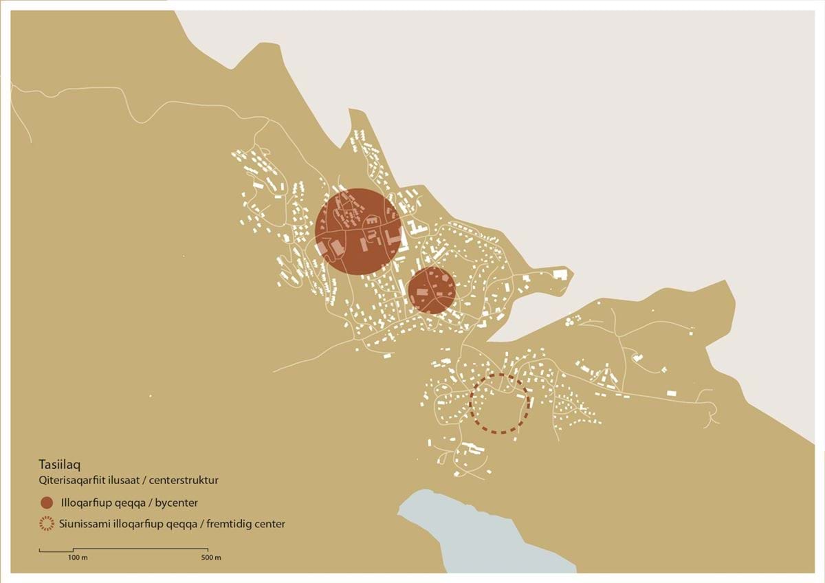Størstedelen af Tasiilaqs centerområder er i dag beliggende i den nordlige del af byen med udgangspunkt i byens historiske centrum, der i dag fungerer som det ene af to centerområder i denne del af byen. Området strækker sig fra havnen op over de græsklædte skråninger. Området rummer huse tilbage fra oprettelsen af ”Missions- og handelsstationen ved Angmagsalik” i slutningen af 1890'erne. Denne del af området er bevaringsværdig og nærmere beskrevet i afsnittet om bevaringsværdige områder. Resten af området rummer en lang række offentlige funktioner.
