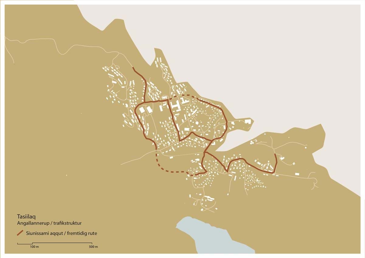 De seneste år er vejnettet i Tasiilaq løbende forbedret, og primærvejene asfalteret. Disse forbedringer fortsætter i denne planperiode, med bl.a. forbedring af forbindende veje, samt broforbindelsen over elven.